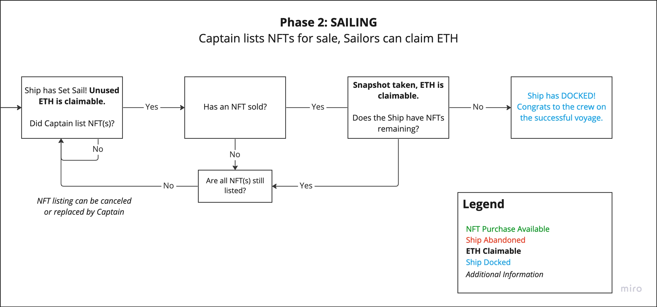 First, if there is any excess ETH after the Ship has Set Sail, the Sailor is able to claim this immediately.